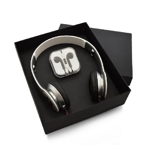 Kit em caixa de papel com fone de ouvido headphone e fone de ouvido bluetooth.